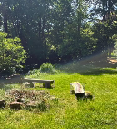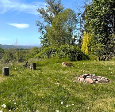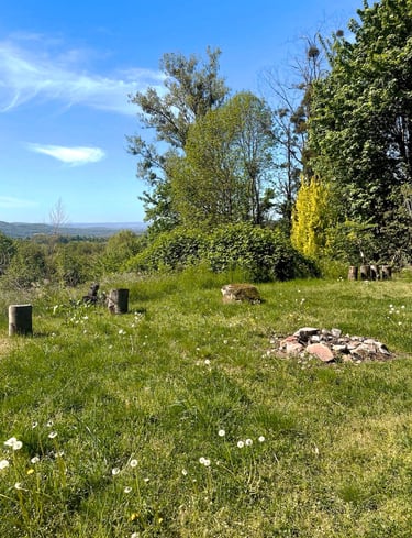 A secluded retreat space surrounded by forest and fields — a place where your nervous system can release